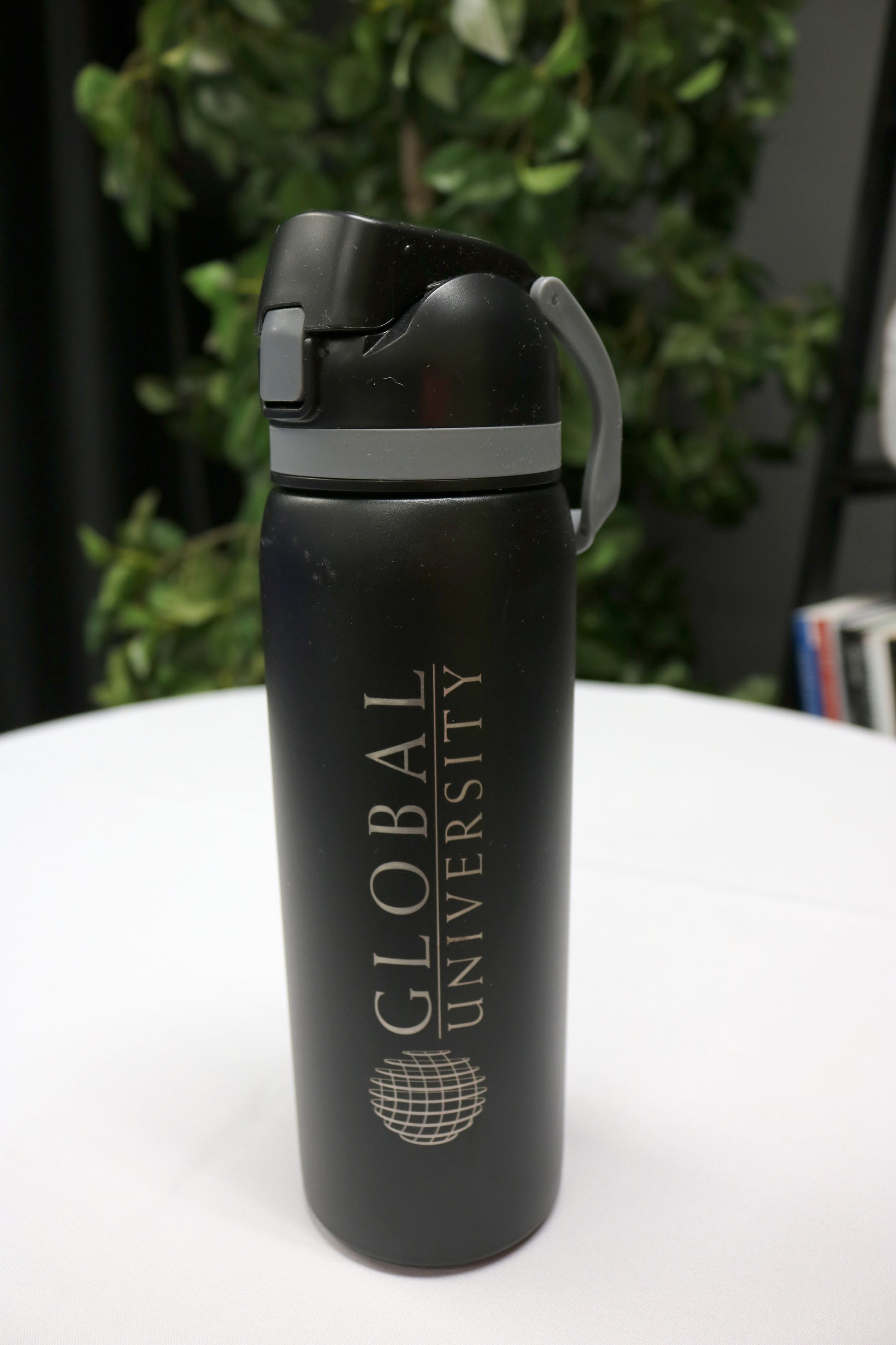 With its sleek, durable design and secure flip-top lid, this bottle keeps your water (or favorite drink) close at hand without slowing you down. Its bold Global University emblem reminds you that you’re part of a worldwide community of learners, explorers, and leaders.